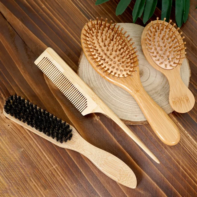 All-in-One Wooden Hair Brush & Comb Set – Tail, Cushion & Travel Size