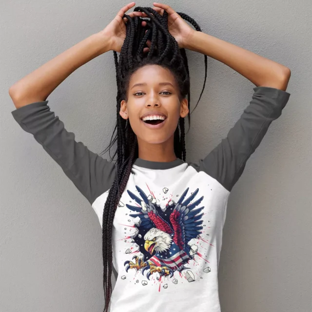 American Eagle Flag Baseball T-Shirt – Red White Blue 3/4 Sleeve – Patriot Raglan Jersey Shirt