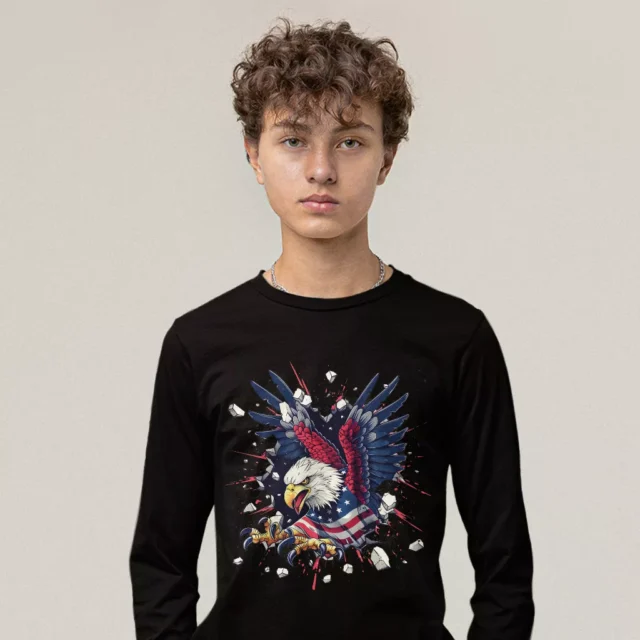 American Eagle Flag Long Sleeve T-Shirt – Patriot T-Shirt – Red White Blue Basic Tee