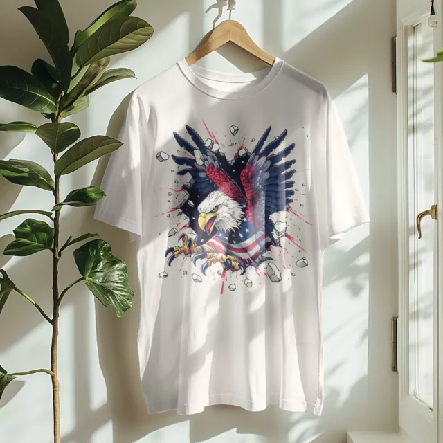 American Eagle Flag T-Shirt – Patriot Heavy Cotton Tee – Red White Blue Shirt