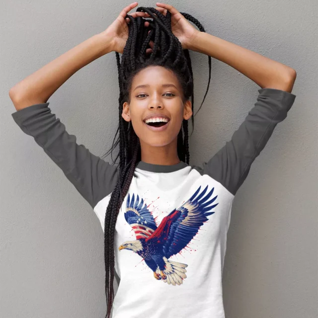 Bald Eagle Patriotic Baseball T-Shirt – American Spirit 3/4 Sleeve – Freedom America Raglan Jersey Shirt