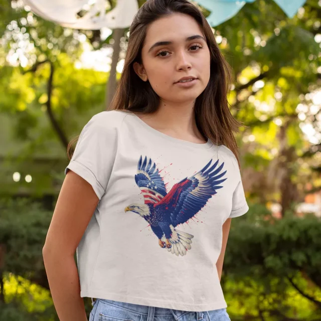 Bald Eagle Patriotic Cropped T-Shirt – Freedom America Trendy Tee – American Spirit Women’s Basic T-Shirt