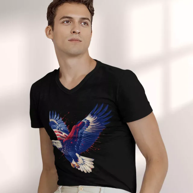 Bald Eagle Patriotic V-Neck T-Shirt – Freedom America Basic T-Shirt – American Spirit Tee