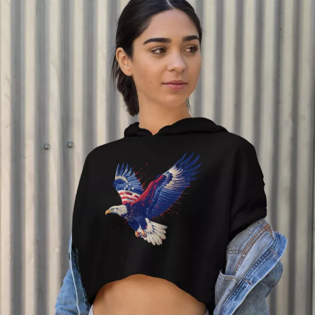 Bald Eagle Patriotic Women’s Cropped Hoodie – Freedom America Hooded Sweatshirt – American Spirit Super Crop Top Hoodies