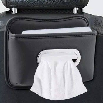 Car Headrest and Dashboard Tissue Holder with Sticky Back and Storage Pocket