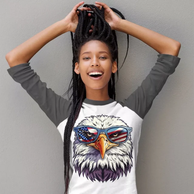 Cool Eagle Baseball T-Shirt – Proud American 3/4 Sleeve – Patriotic Gift Raglan Jersey Shirt