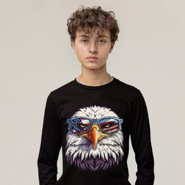 Cool Eagle Long Sleeve T-Shirt – Patriotic Gift T-Shirt – Proud American Basic Tee