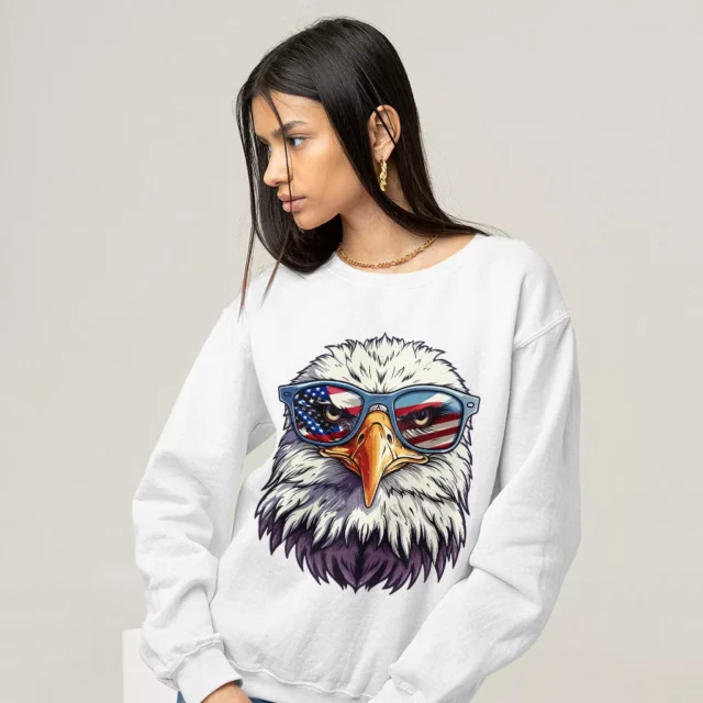 Cool Eagle Sweatshirt – Patriotic Gift Crewneck Sweatshirt – Proud American Unisex Sweatshirt