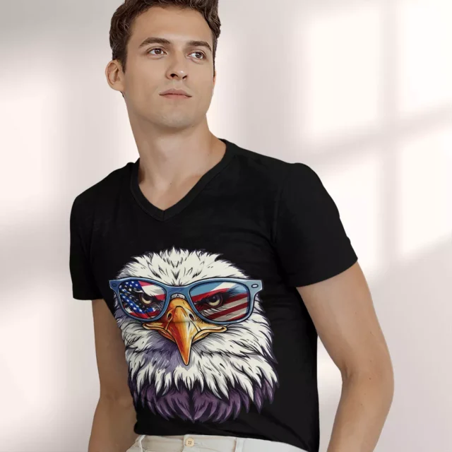 Cool Eagle V-Neck T-Shirt – Patriotic Gift Basic T-Shirt – Proud American Tee