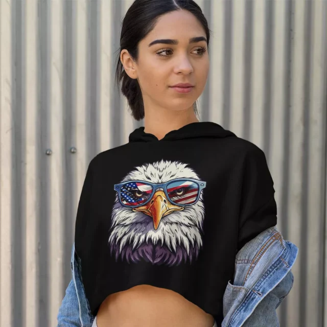 Cool Eagle Women’s Cropped Hoodie – Patriotic Gift Hooded Sweatshirt – Proud American Super Crop Top Hoodies