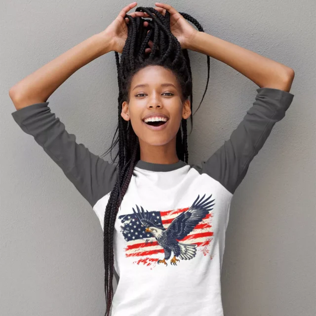 Eagle Graphic Baseball T-Shirt – USA Pride 3/4 Sleeve – Freedom USA Flag Raglan Jersey Shirt