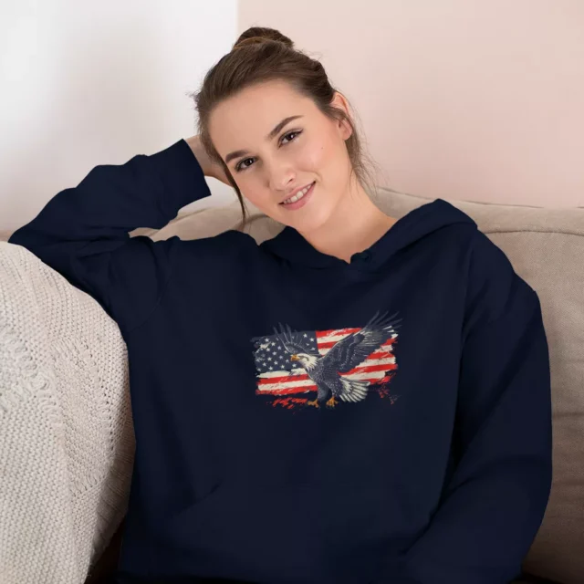 Eagle Graphic Hoodie – Freedom USA Flag Hooded Sweatshirt – USA Pride Unisex Hoodie