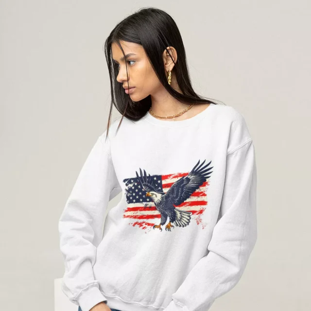 Eagle Graphic Sweatshirt – Freedom USA Flag Crewneck Sweatshirt – USA Pride Unisex Sweatshirt