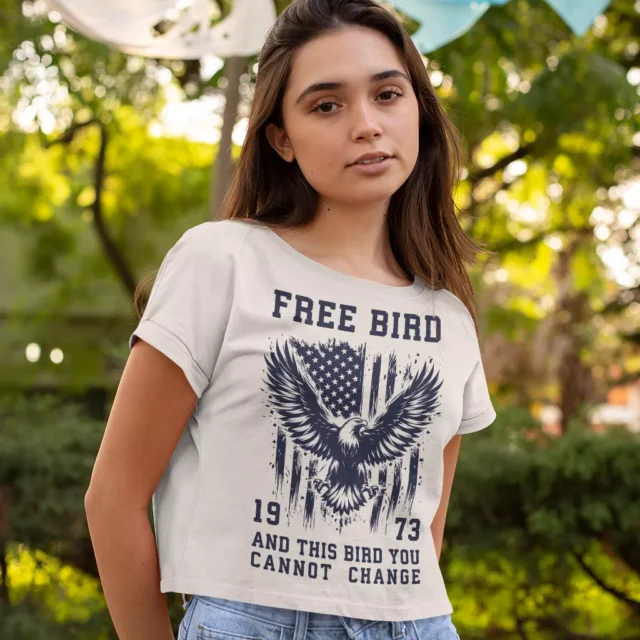 Free Bird 1973 Cropped T-Shirt – Western Trendy Tee – Vintage American Women’s Basic T-Shirt