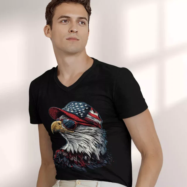 Freedom Eagle V-Neck T-Shirt – American Pride Basic T-Shirt – American Freedom Tee