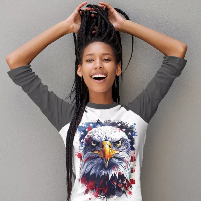 Patriotic American Eagle Baseball T-Shirt – USA 3/4 Sleeve – Veteran Raglan Jersey Shirt