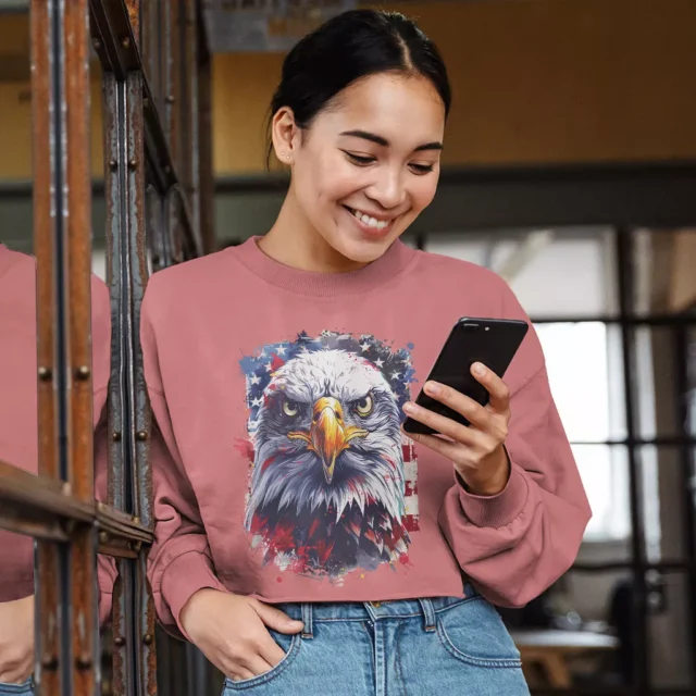 Patriotic American Eagle Cropped Long Sleeve Sweatshirt – USA Women’s Crop Top – Veteran Long Sleeves Pullover