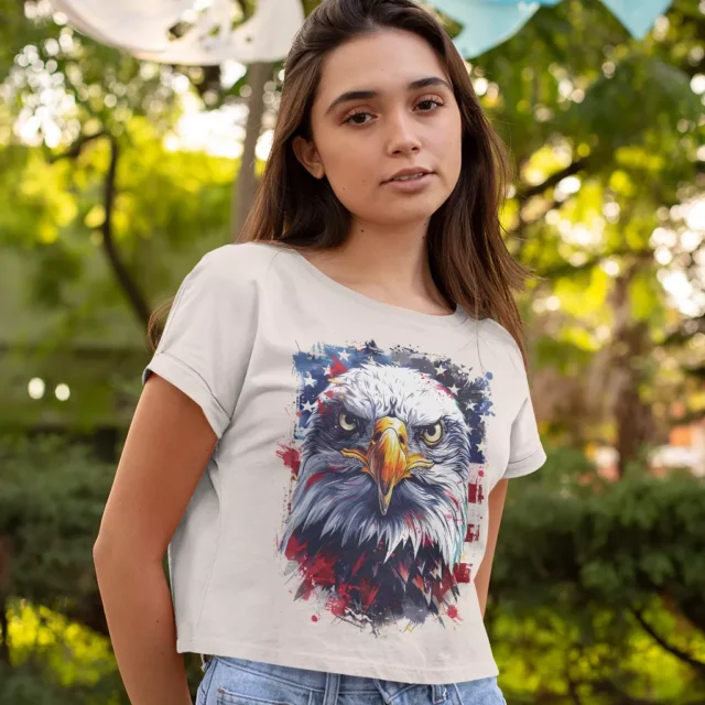 Patriotic American Eagle Cropped T-Shirt – USA Trendy Tee – Veteran Women’s Basic T-Shirt