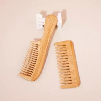 2pcs Natural Bamboo Wood Hair Comb Set – Anti-Static Wide Tooth Brush for Women