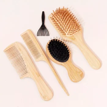 5PCS Wooden Hair Comb Set with Cleaning Tool