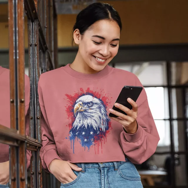 USA Bald Eagle Cropped Long Sleeve Sweatshirt – Freedom Women’s Crop Top – Patriotic Graphic Long Sleeves Pullover