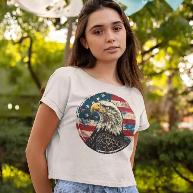 USA Eagle Cropped T-Shirt – American Flag Trendy Tee – 4th Of July Women’s Basic T-Shirt