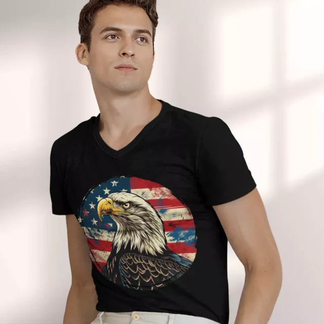 USA Eagle V-Neck T-Shirt – 4th Of July Basic T-Shirt – American Flag Tee