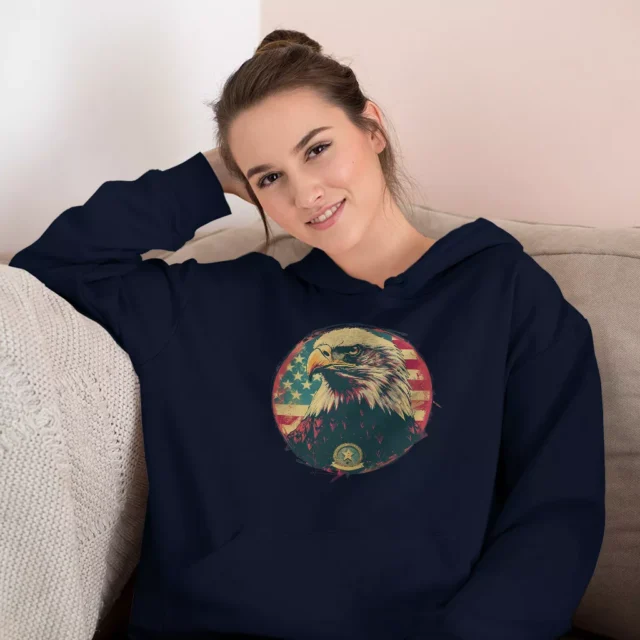 USA Flag Eagle Hoodie – Stars and Stripes Hooded Sweatshirt – Independence Day Unisex Hoodie