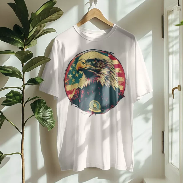 USA Flag Eagle T-Shirt – Stars and Stripes Heavy Cotton Tee – Independence Day Shirt