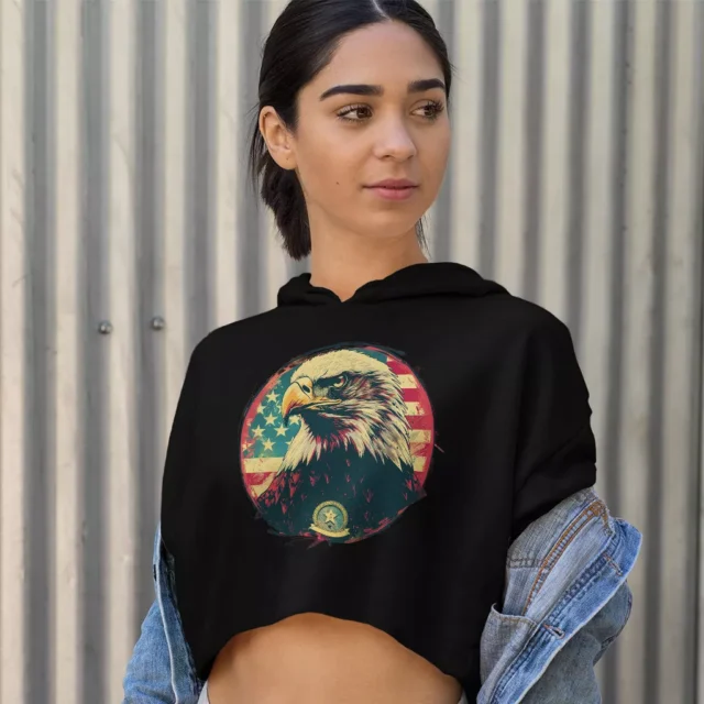USA Flag Eagle Women’s Cropped Hoodie – Stars and Stripes Hooded Sweatshirt – Independence Day Super Crop Top Hoodies